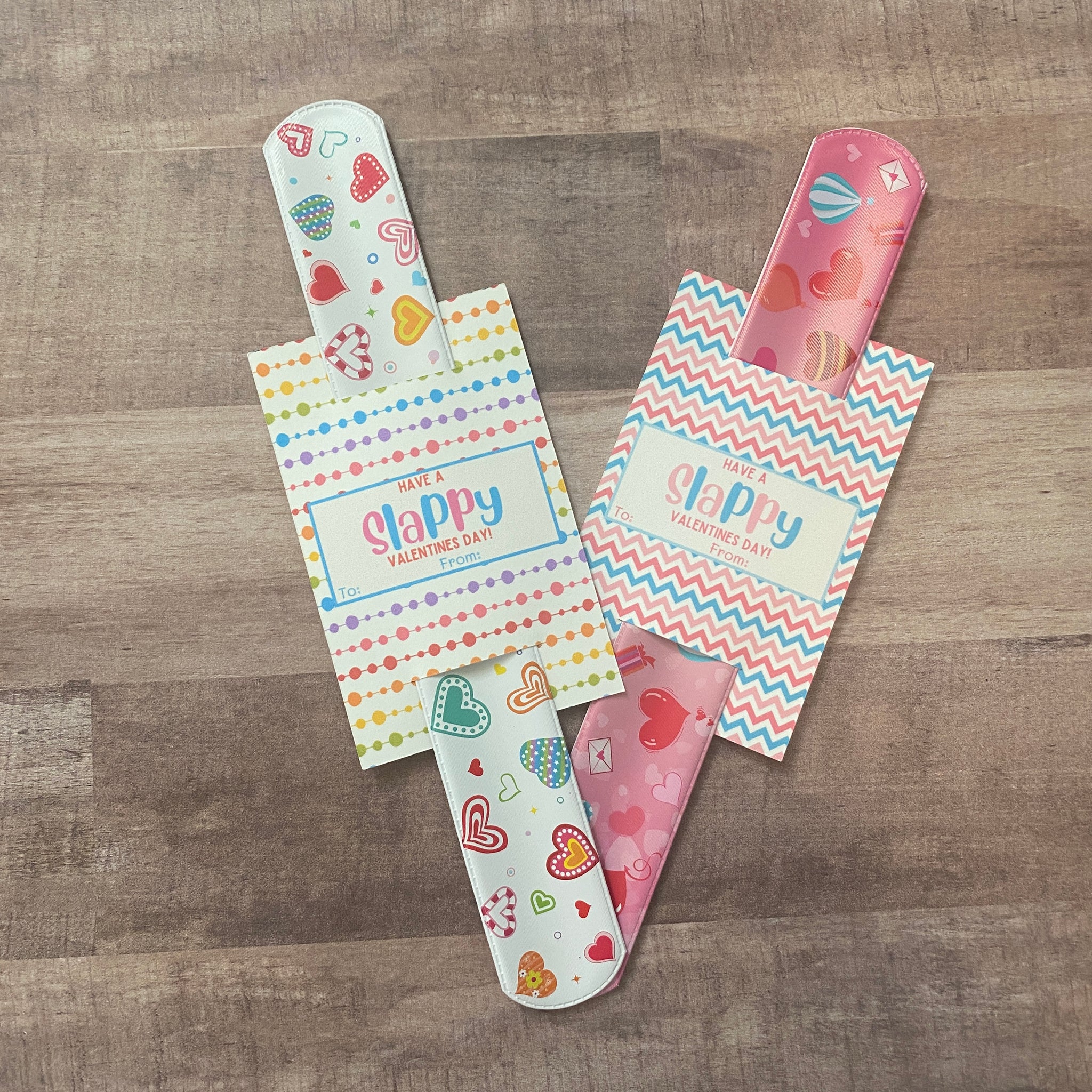Stand out from the crowd with these adorable Slap Bracelet Valentines! Each valentine comes with Valentines themed slap bracelet and card. You will receive a mix of card design. Slap bracelet design will vary.